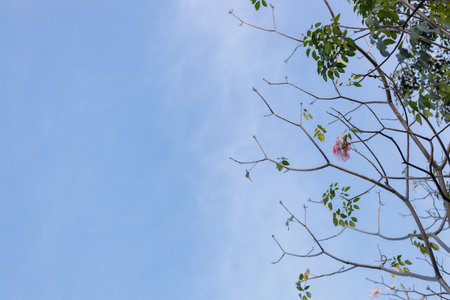 Pink flowers are blooming beautifully with blue sky background in spring