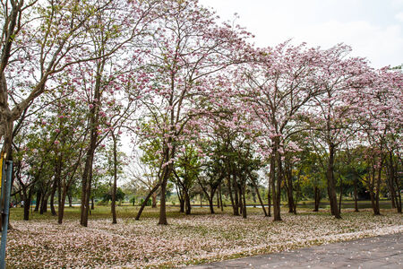 full of Tabebuia rosea pink trumpet tree Chompoo Pantip in Thailand.