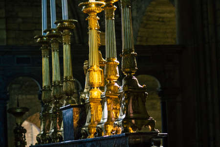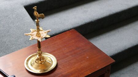 in the church on the table fuming golden lamp