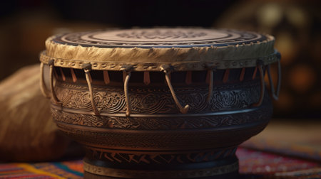 close-up on a djembe, an african drum with intricate designs, created with generative ai