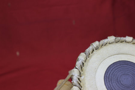 Indian tabla drums on a red background. close up