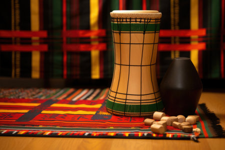 african drum on a mat with kwanzaa unity cup, created with generative ai