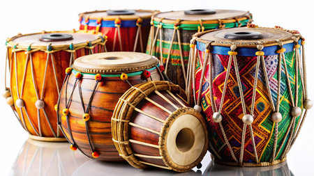 Indian Drums Isolated on White, Traditional Percussion Instruments, Studio Shot