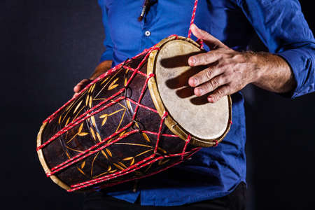 Hand hitting on authentic Indian drum