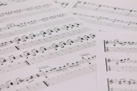 music-noteson white paper closeup perspective
