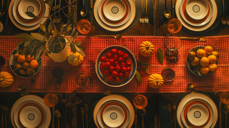 An Overhead View Of A Table Set For A Formal Dinner. Generative AI