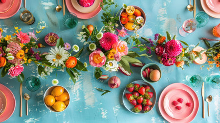 festive table dressing in spring colors,ready for event celebration.
