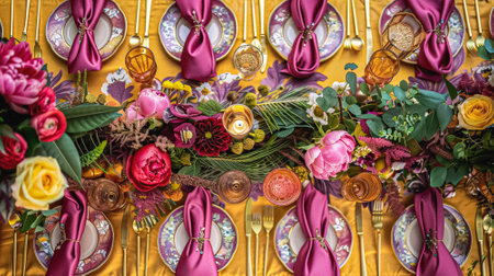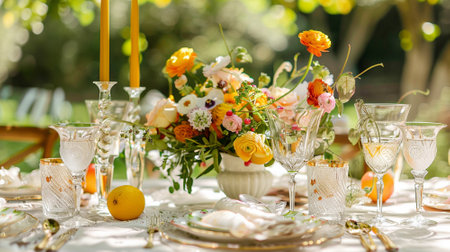 festive table dressing in spring colors,ready for event celebration.