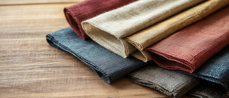 Linen dinner napkins on a wood background.