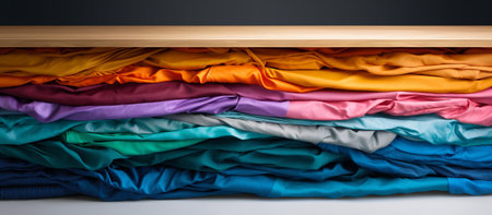 Folded colorful clothes are creating a wavy pattern, showcasing a vibrant and diverse selection of fabrics