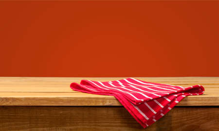 red kitchen cloth on the table.