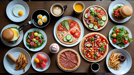 Photorealistic detailed image of Various types of Food, Generative Ai