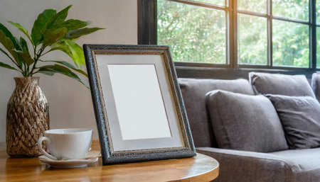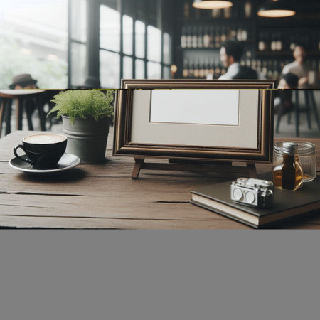Blank Photo Frame Mockup Blank Copy Space Concept in Coffee Shop