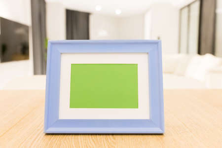 Vintage photo frame on chest of drawers with beautiful landscape view
