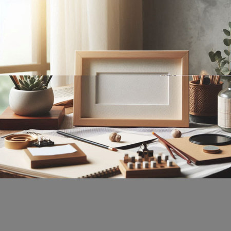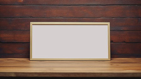 a sleek and modern gold frame is elegantly displayed on a wooden table in this minimal-style frame mockup image. the soothing gold color theme adds a touch of sophistication to the overall aesthetic. ai generated
