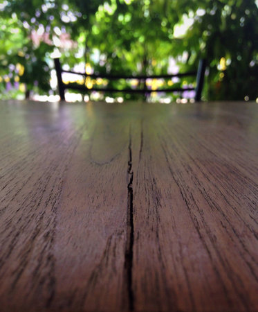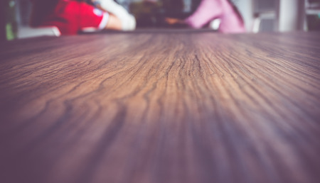 Rustic Wood plank in perspective view (low angle) in coffee shop.