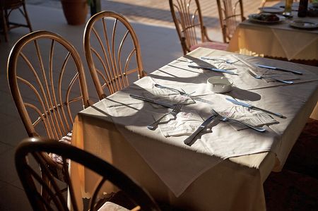Knife on restaurant table. No people