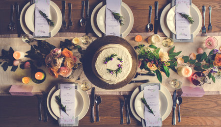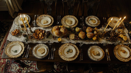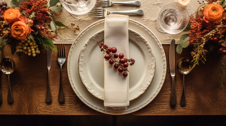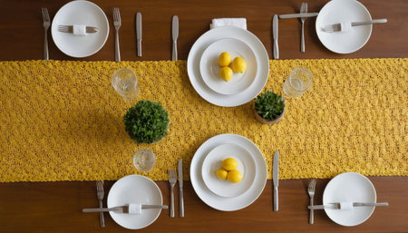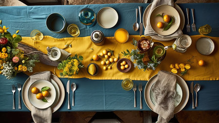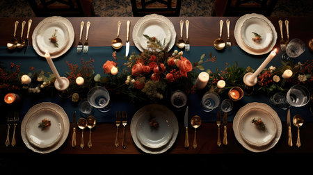 a top view photo of a table set in dining room professional advertising photography