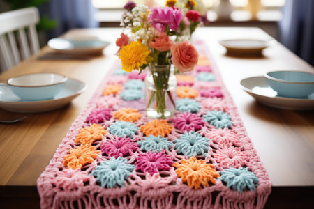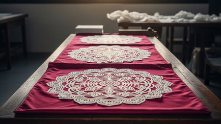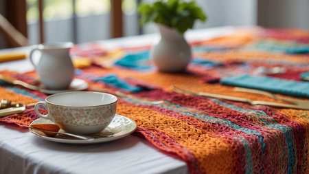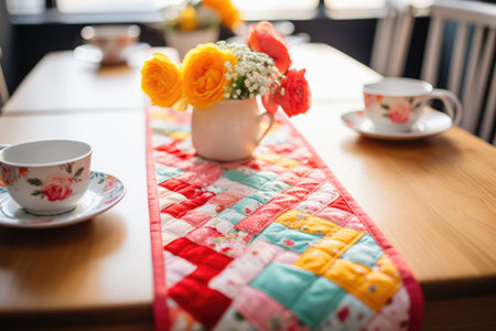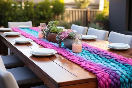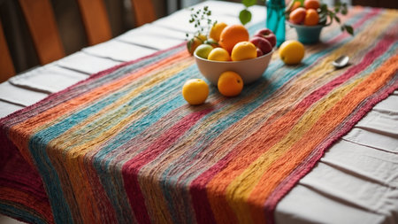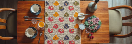 table runner created from clothing materials, created with generative ai