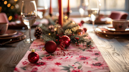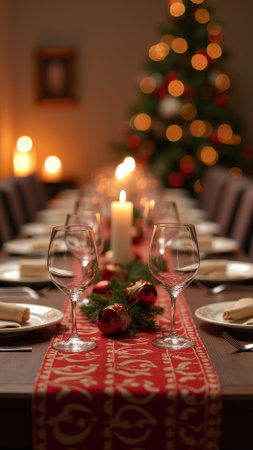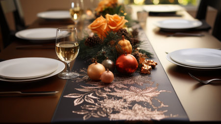 Festive Table Elegantly Set Up For Joyful Christmas Celebration