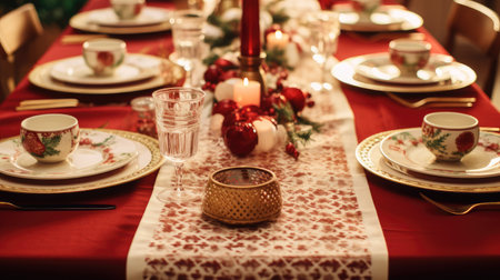 Christmas table decor, holiday tablescape and dinner table setting, formal event decoration for New Year, family celebration, English country and home styling inspiration