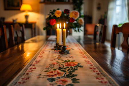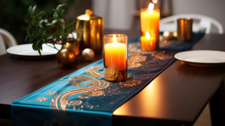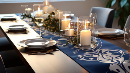 Table With Blue Table Runner and Candles