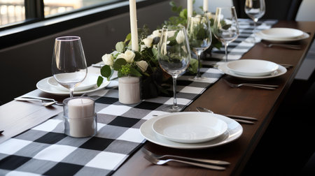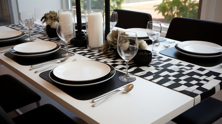 Dining Delight Image of Chic and Modern Geometric Table Runner Isolated on White Background