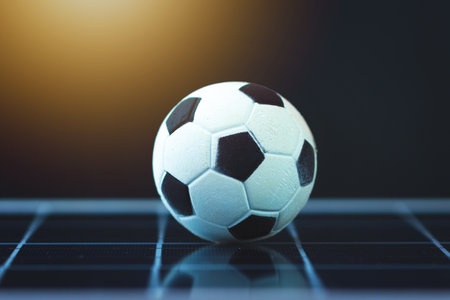 A soccer ball in a glass frame, with a blurred net in the background, symbolizing a game-winning goal