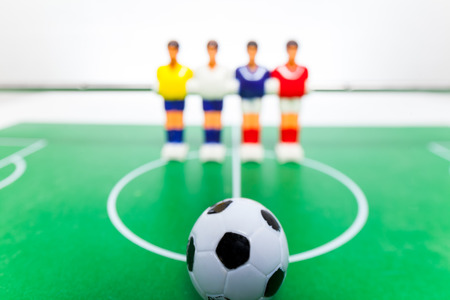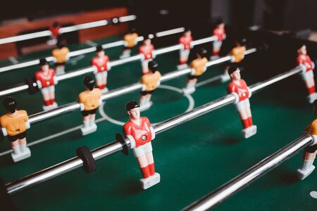 Concept of Board games. Table football game, Soccer table with red and blue players