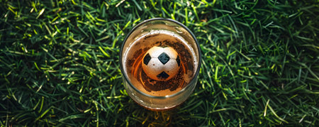 Fresh cold beer and soccer ball. Watch match with friends in pub or bar. Game and drink