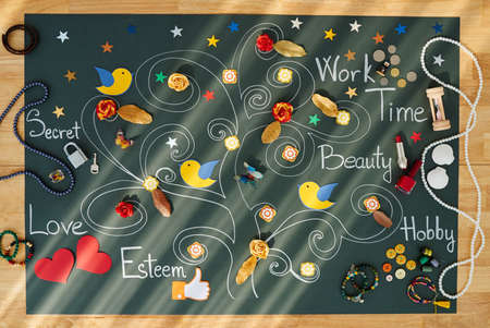 Placard with tree of dreams on the table