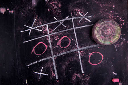Empty blank black chalkboard with colorful chalk