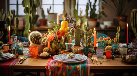 Festive dinner setting with candles and decorations for a special occasion at home