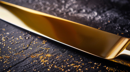 A highend kitchen knife with a handle made of polished gold giving it a stunning luxurious appearance. The blade is made of highcarbon stainless steel and has a razorsharp edge fo