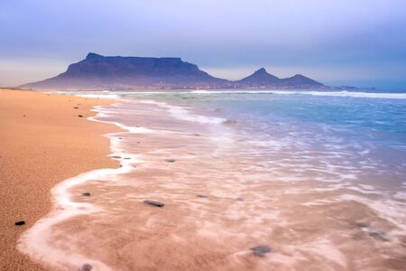Early morning waves overlooking table mountain from blouberg starnd