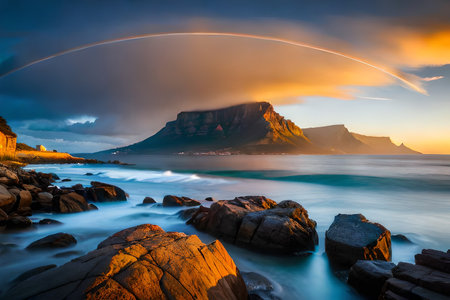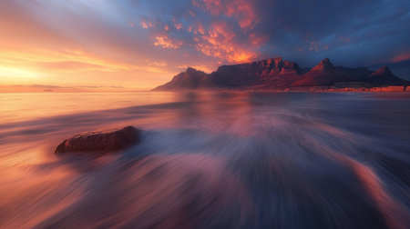 Twilight seascape overlooking Table Mountain