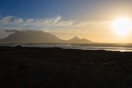 View of Table Mountain at sunrise, Cape Town, South Africa from Milnerton Beach