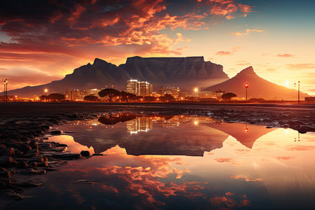 Landscape of Cape Town and Table Mountain at sunrise