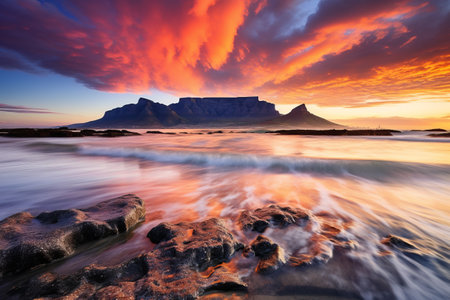 Captivating Sunset at Bloubergstrand: Scenic View of Table Mountain in Cape Town, South Africa