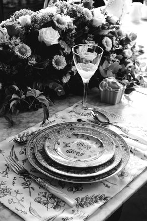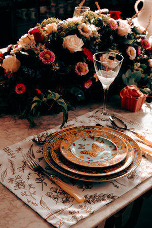 Table setting and decoration for a ceremony or celebration.