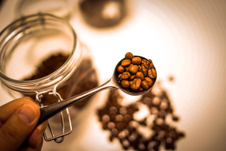 Coffee beans and coffee slice spoons. Shooting Location: Yokohama-city kanagawa prefecture