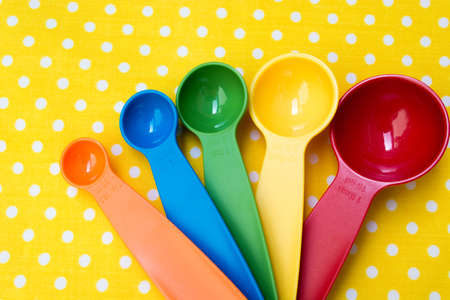colorful measuring spoon on yellow background