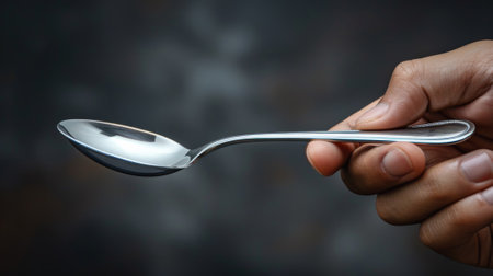 A person holding a spoon in their hand with the handle facing them, AI