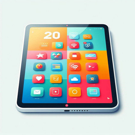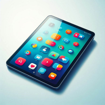 Tablet PC with colorful application icons on the screen. Vector illustration