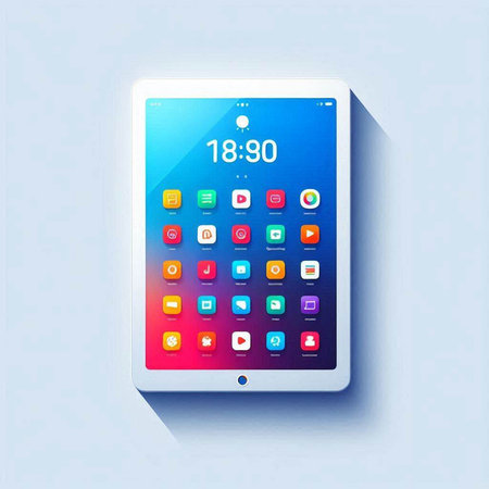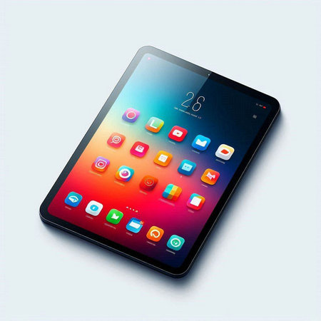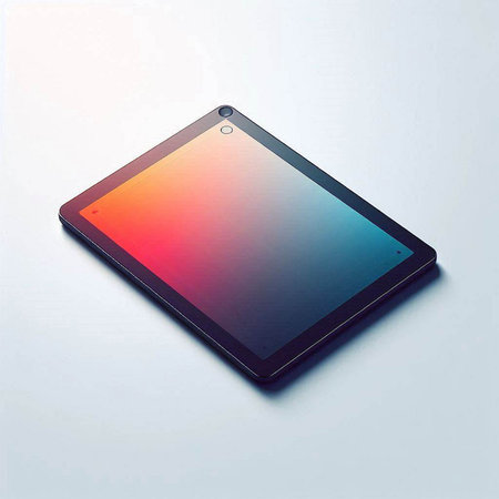 Tablet PC with colorful screen isolated on white background. 3d illustration