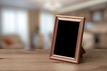 Photo frame on wooden table
