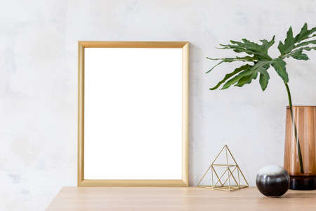 Mock up poster frame in Scandinavian style hipster interior. Minimalist modern interior design.