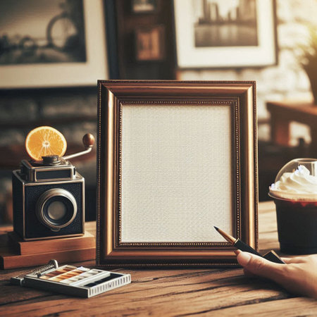 Generative AI : photo frame on wooden table