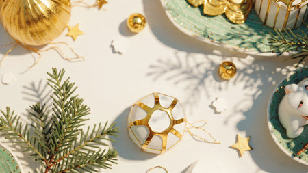 Festive flat lay with very few Christmas decor creating a minimalist look AI generated illustration