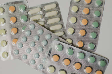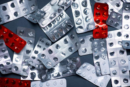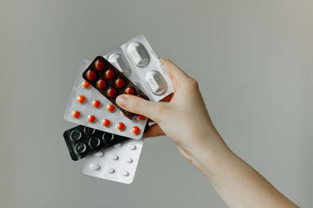 Medicines on a gray background of a different color